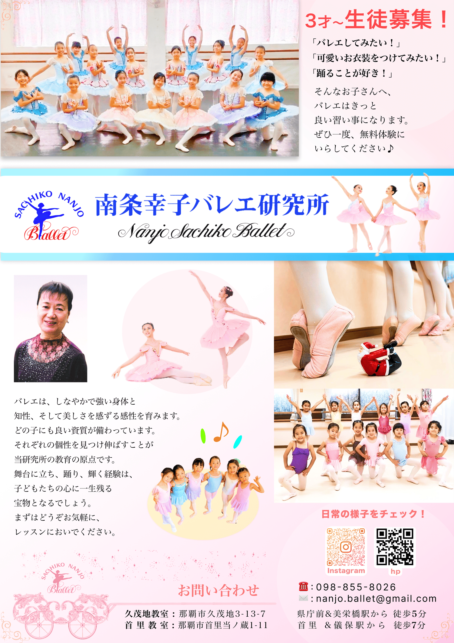 文化の古都、首里の落ち着いた空気の中、南条っ子たちはのびのびと踊りに向き合うことができます。南條バレエ設立以来80年もの間、地域の子ども達の情操教育のためにバレエが教えられてきました。