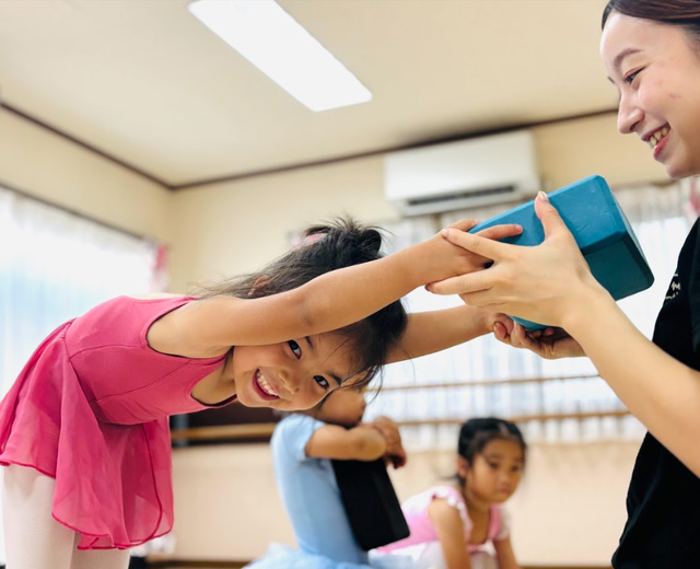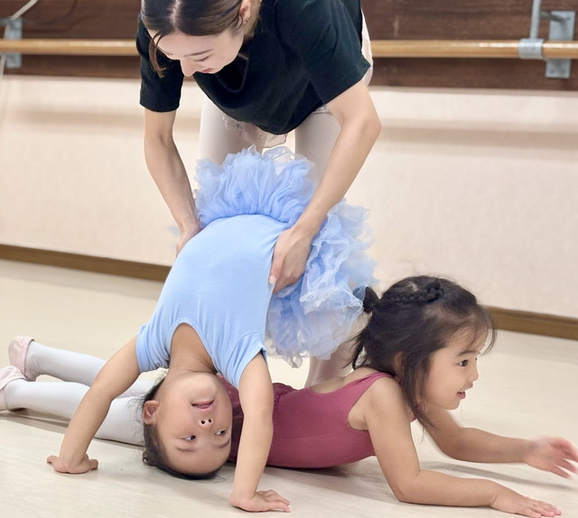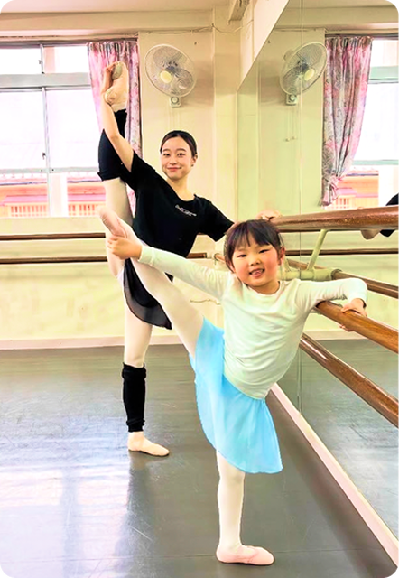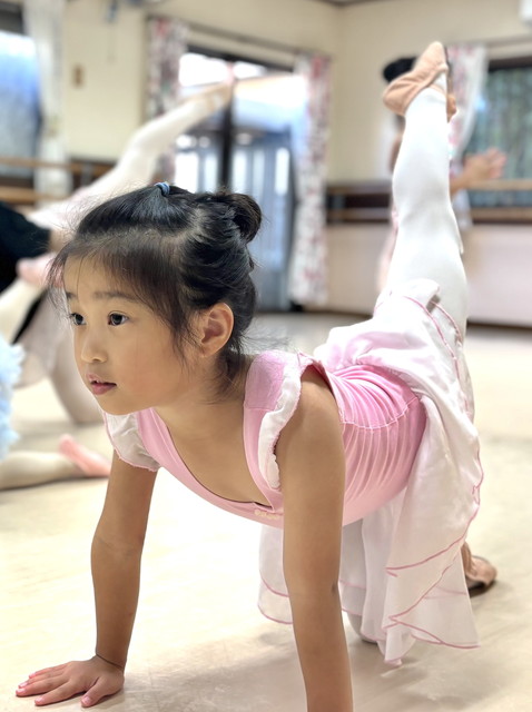 憧れのトウシューズを履くには、しっかりとした体幹と強い足がなければいけません。基礎レッスンを積み重ねながら、その準備を整えていきます。